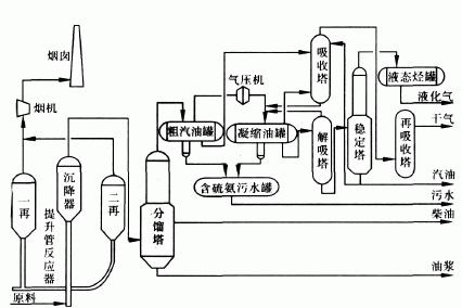 反應再生系統(tǒng):提升管反應器、再生器、催化劑罐、主風機、煙氣輪機、余熱鍋爐